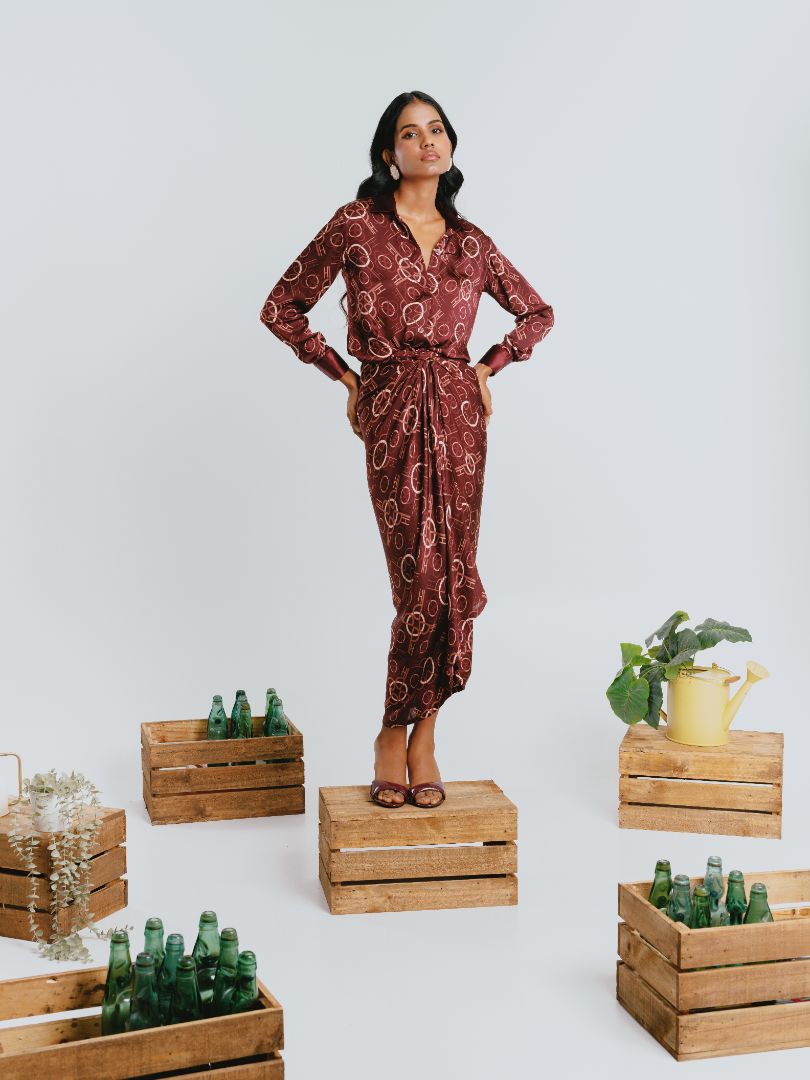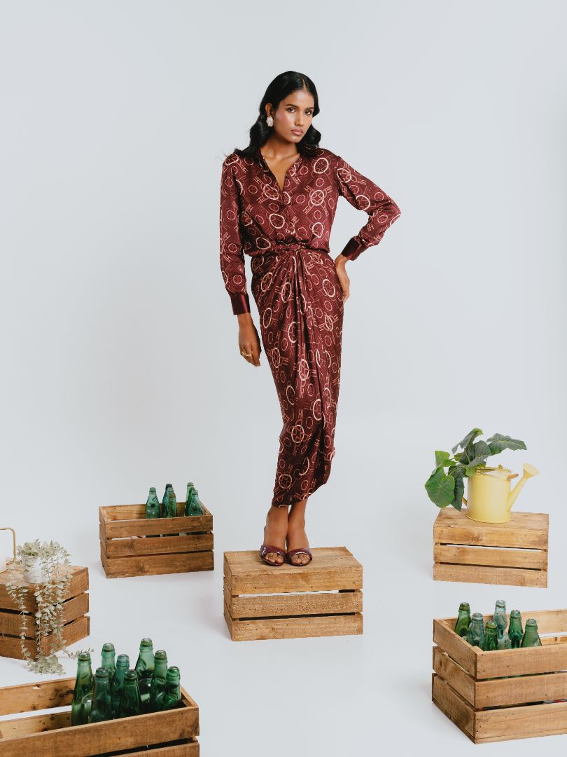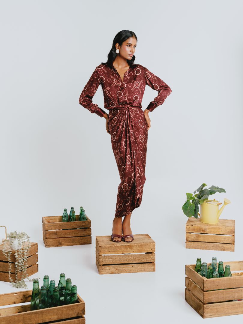 Red Pleated One Shoulder Co-ord Set