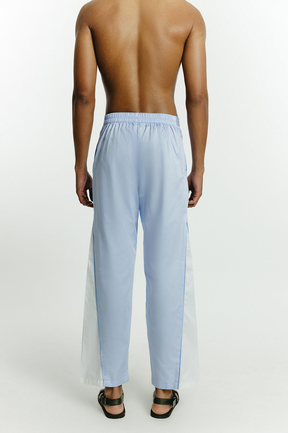 Straight-fit trousers with pockets and an angular patch on the hemline.