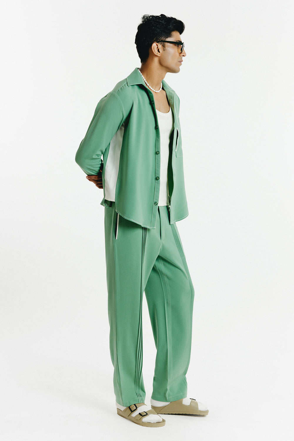 Dust Green Pin Tuck Pants